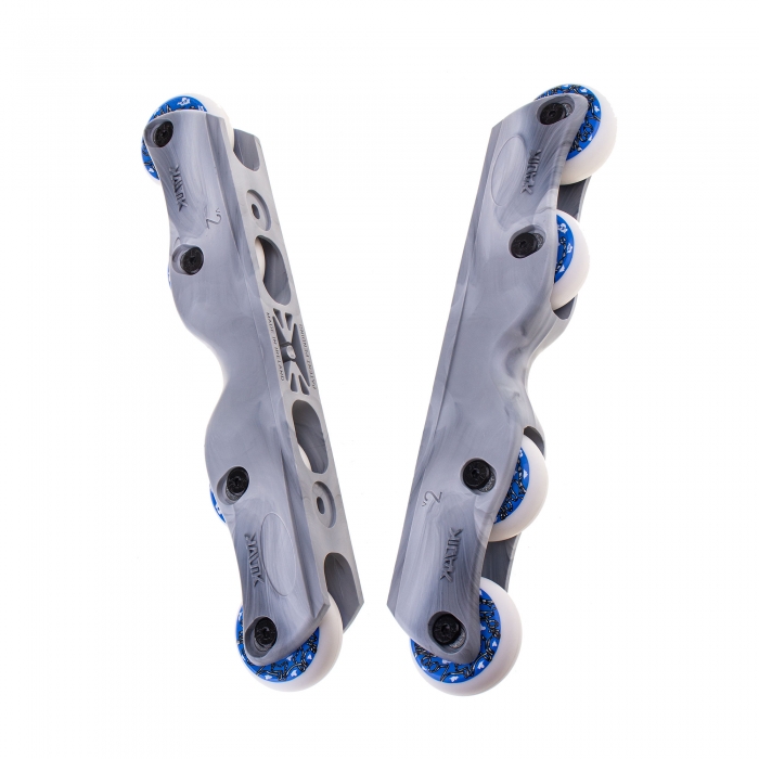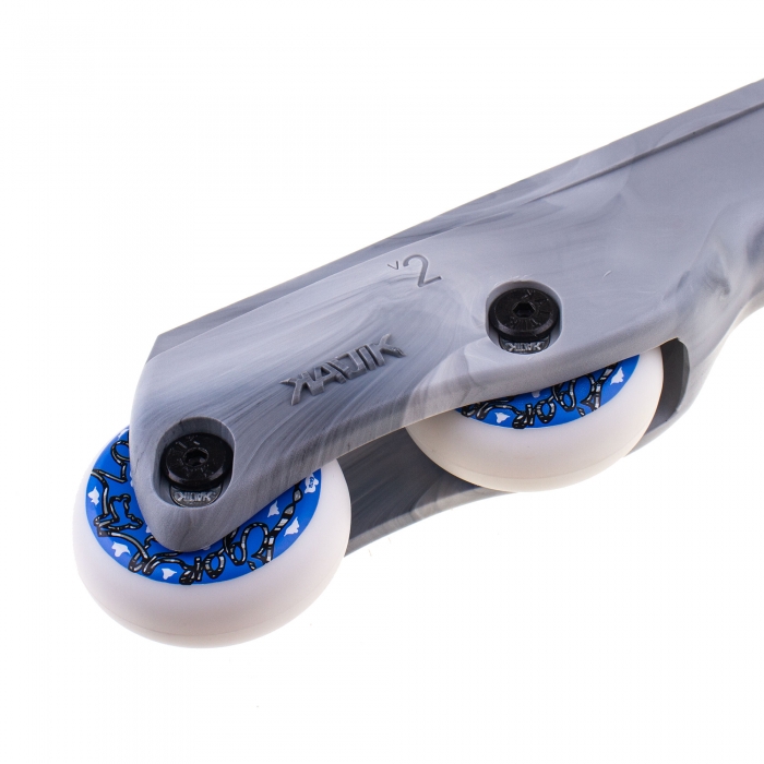 The Kaltik Flat v.2 frames are a dedicated solution for aggressive inline skating on eight wheels. The innovative shape of the frame will ensure stress-free grinds on curbs and rails, eliminating any risk of wheel bite. The split between the second and third wheel has been maximized here, with the inner wheels additionally protected by a slightly protruding H-block.