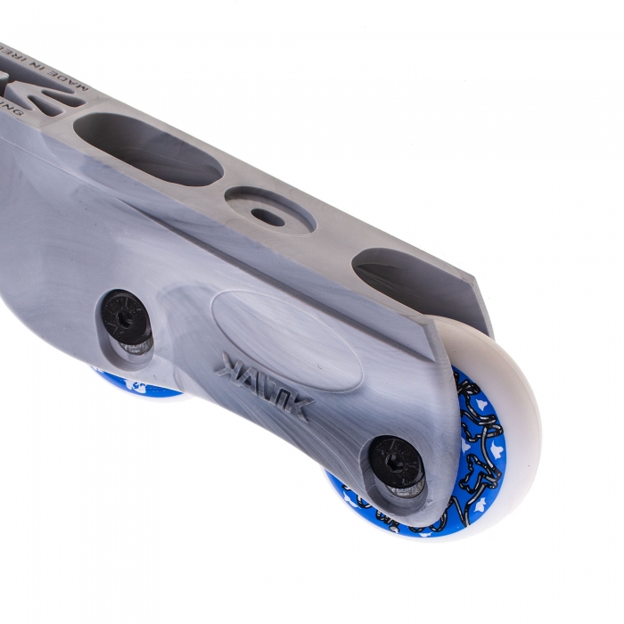 Four wheels in one frame means excellent speed, but also incomparable manoeuvrability — if the anti-rocker setup seems slow and makes fast turns difficult, for example when bowling or skating on a mini ramp, the Kaltik v.2 can make a noticeable difference.